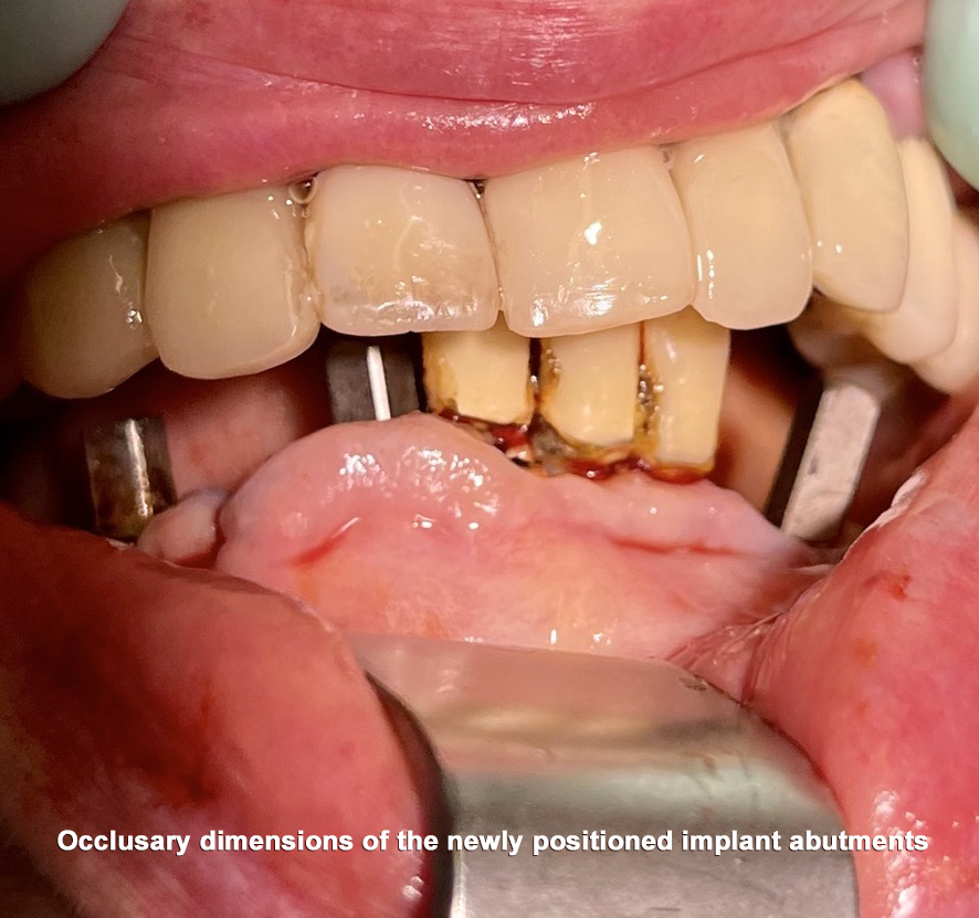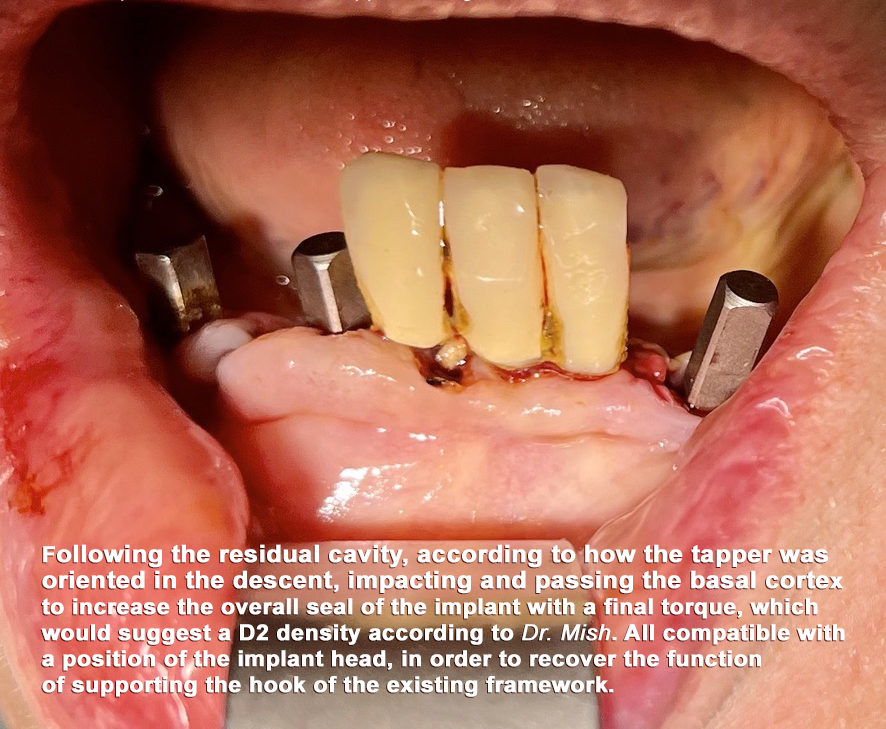 - Palpation that confirms the CT data regarding the shape and course of the bone, the presence of adherent gingiva, intermaxillary relationships and residual occlusal space to confirm the height of the abutment.