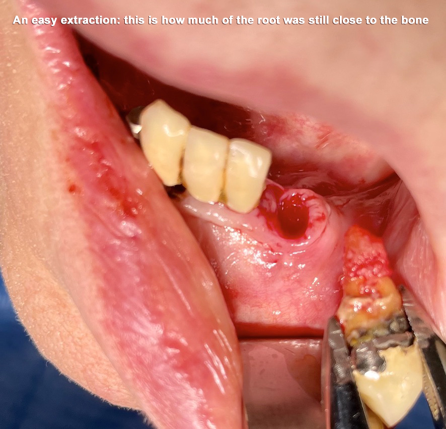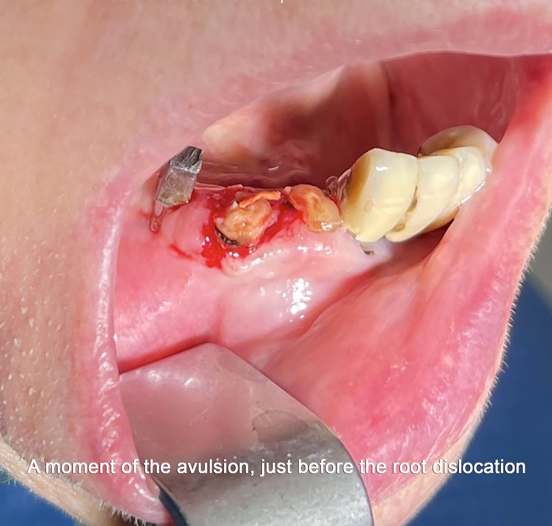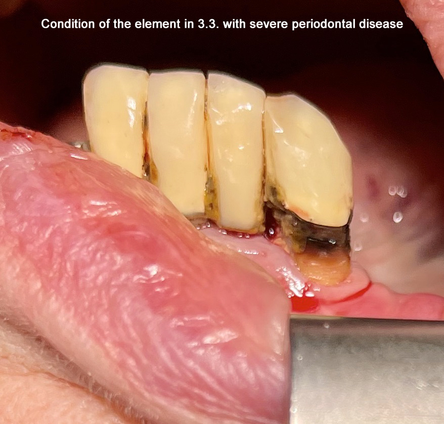 - Open the intraoral X-ray to see the initial situation, in particular undercuts of the roots to be extracted, apical radiolucencies, presence of severe periodontal diseases, bearing in mind the frequency of repetition of abscess episodes if present.