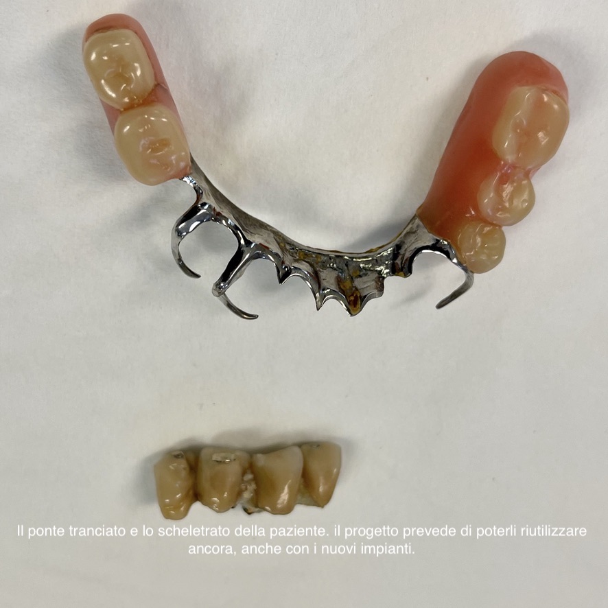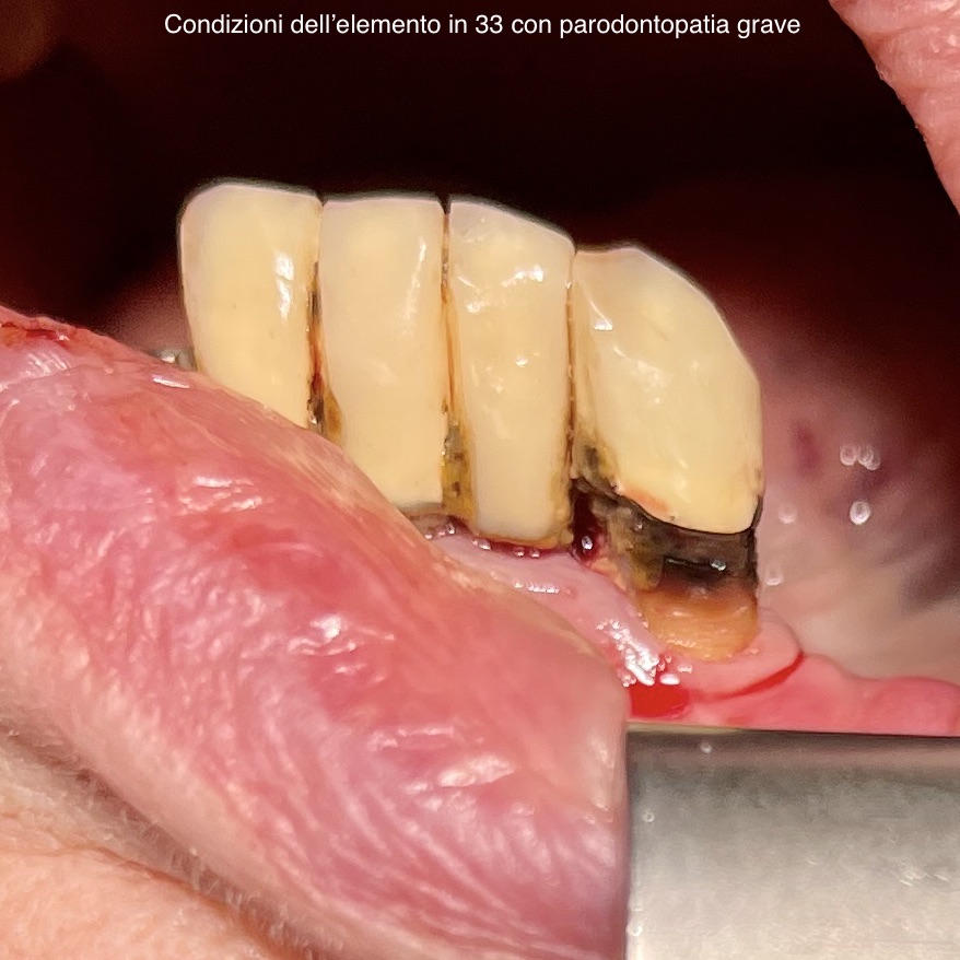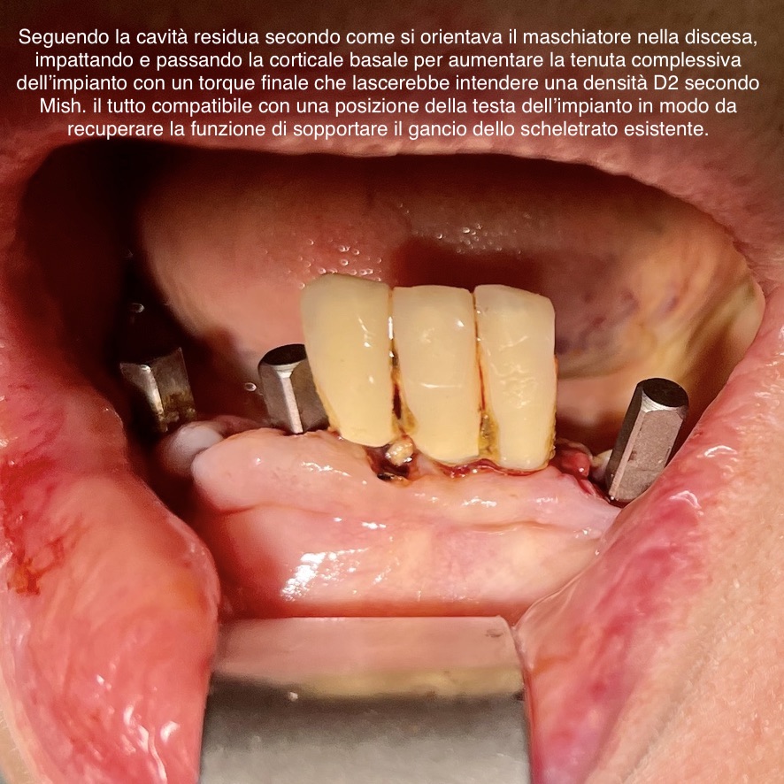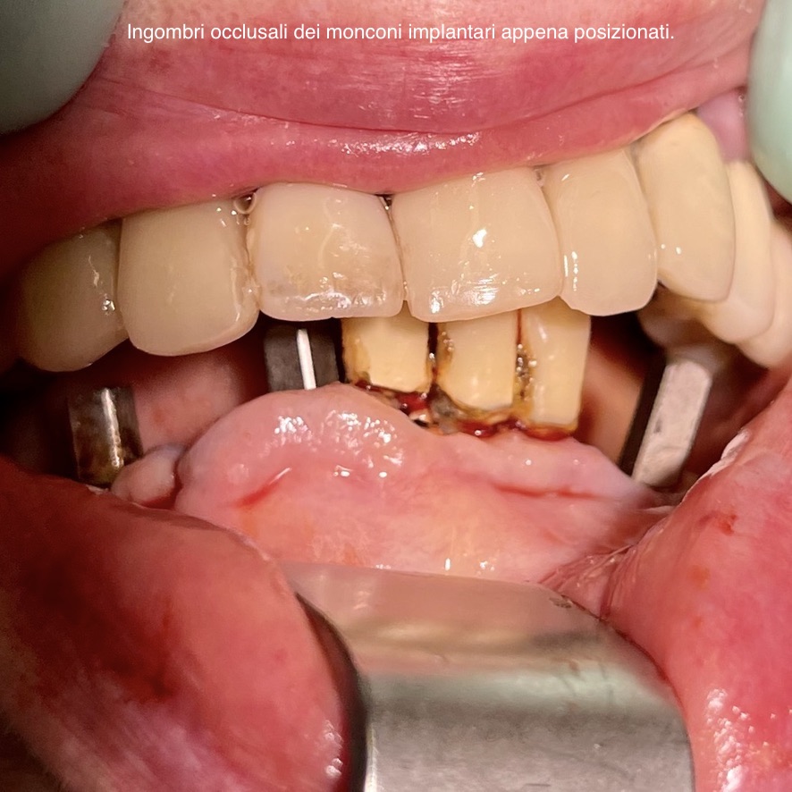 - Palpazione che confermi i dati tac riguardo a forma e andamento dell’osso, presenza di gengiva aderente, rapporti intermascellari e spazio occlusale residuo per confermare l’altezza del moncone.