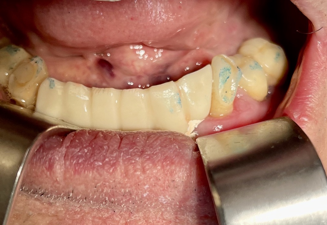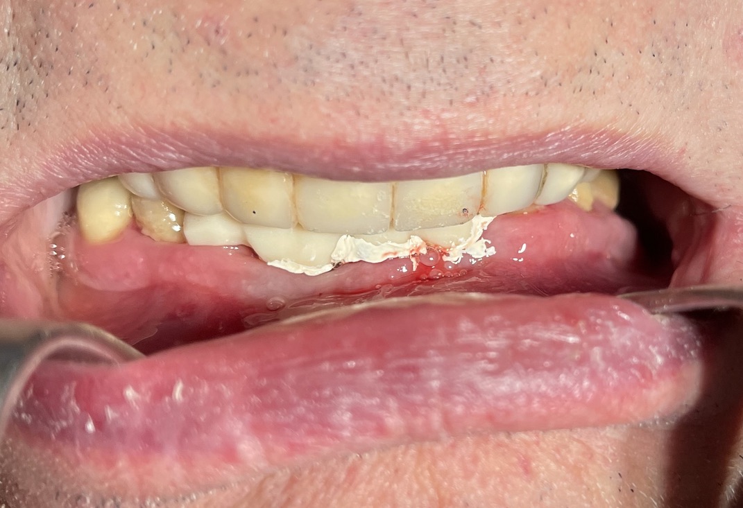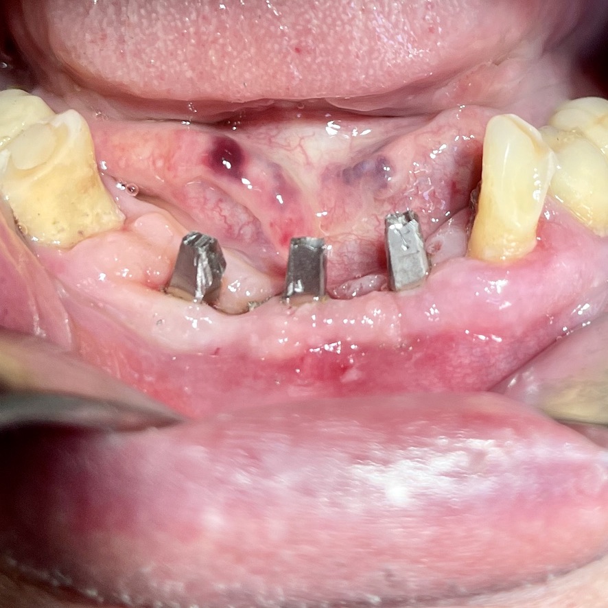 Così la perforazione delle corticali linguali può indurre la lacerazione di vasi del pavimento buccale con stravasi che anche se non importanti sono comunque ben visibili e fastidiosi.