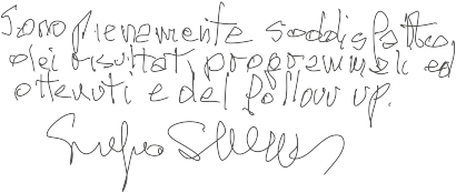 Sono pienamente soddisfatto dei risultati programmati ed ottenuti e del follow up.